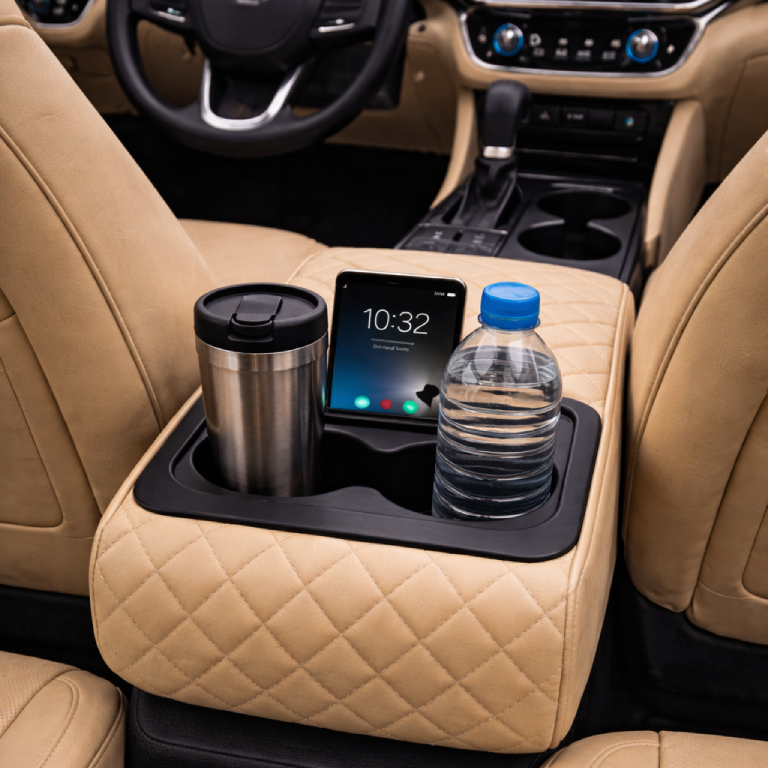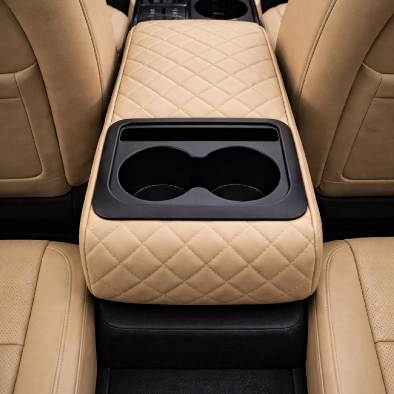 مسند يد عملي بتصميم فاخر مبطن بخياطة دياموند أنيقة، يوفر راحة مثالية أثناء القيادة مع تنظيم إضافي داخل السيارة. مزود بحامل أكواب مزدوج وفتحة مخصصة للهاتف أو الإكسسوارات، ليجمع بين الراحة والفخامة في آن واحد. مناسب لمعظم السيارات السيدان وSUV.