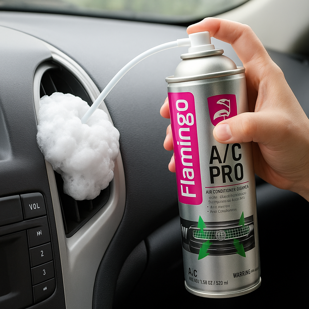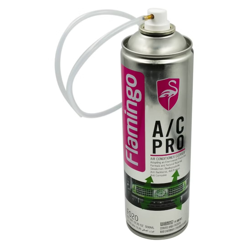 احصل على هواء نقي ومنعش داخل سيارتك مع منظف تكييف الهواء Flamingo A/C Pro F020 المصمم خصيصًا لتنظيف وتعقيم نظام التكييف وإزالة الروائح الكريهة والبكتيريا.