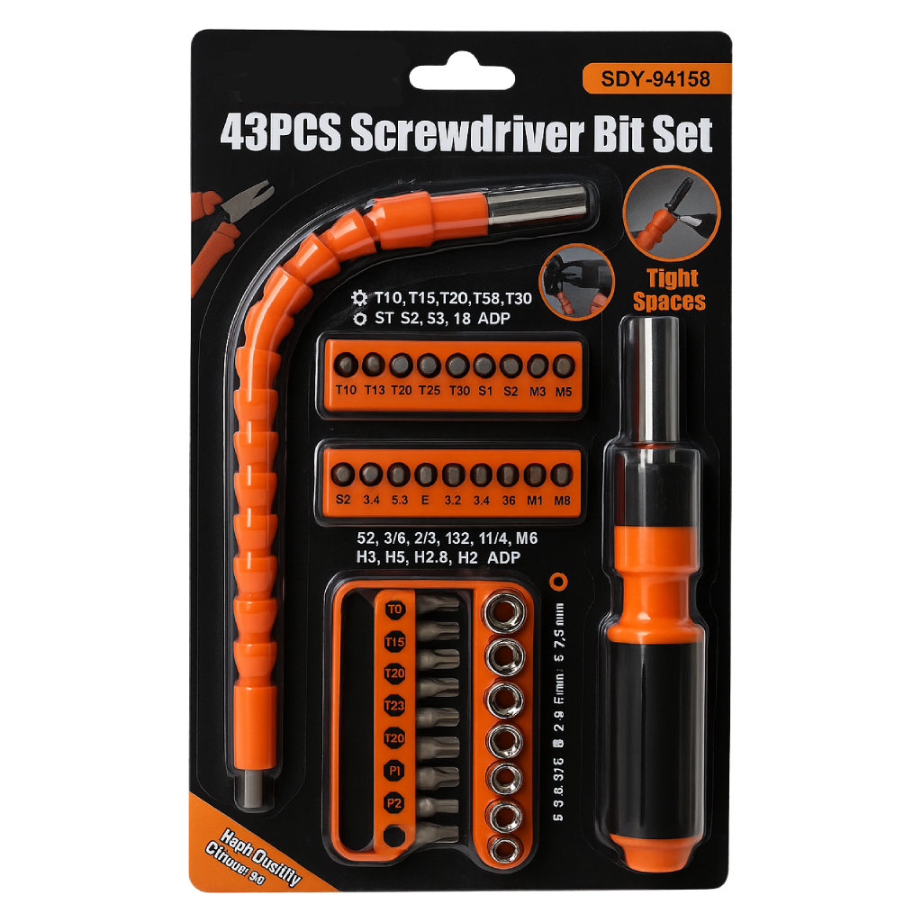 احصل على مجموعة المفكات الكاملة من BISSO التي تضم كل ما تحتاجه لأعمال الصيانة المنزلية والاحترافية في طقم واحد مكون من 43 قطعة.
